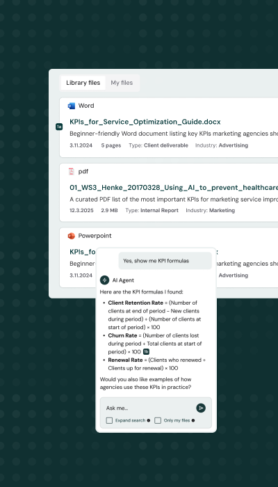 Every engagement builds on what came before. Across 100+ deployments, we’ve accumulated a delivery platform — proven modules, integration patterns, and agent architectures. Your system is custom. The foundation is battle-tested. That’s how we compress timelines without cutting corners.
